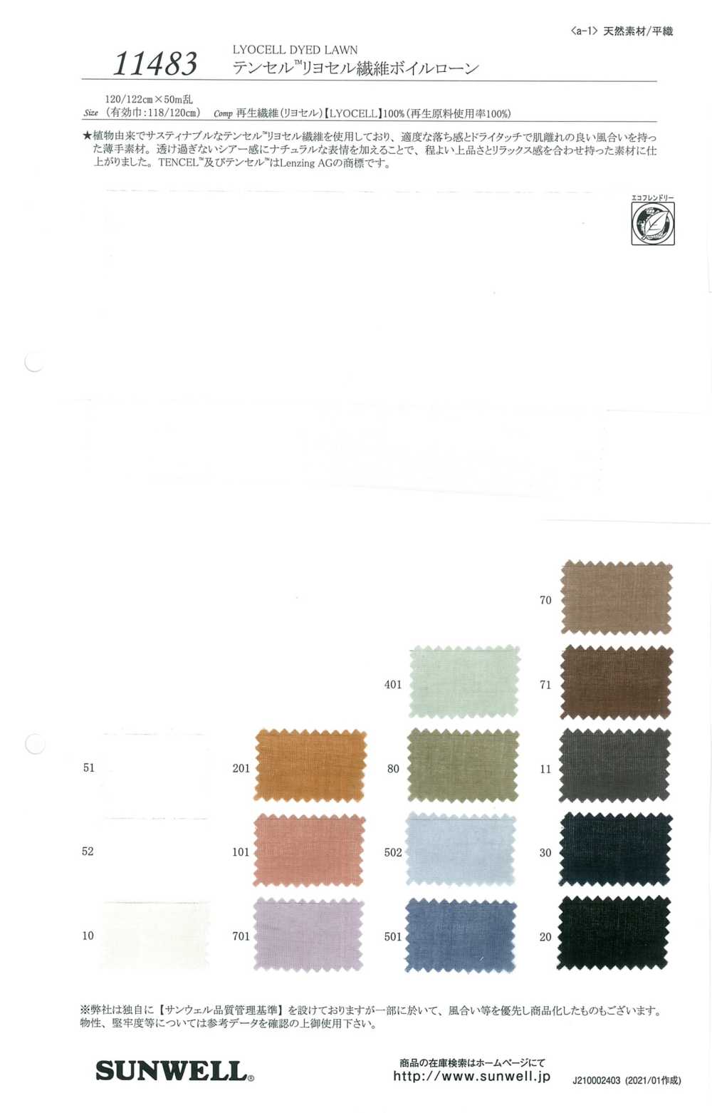 Made from plant-based, sustainable Tencel™ Lyocell fiber, this thin material has a moderate drape and a dry touch that feels comfortable against the skin.