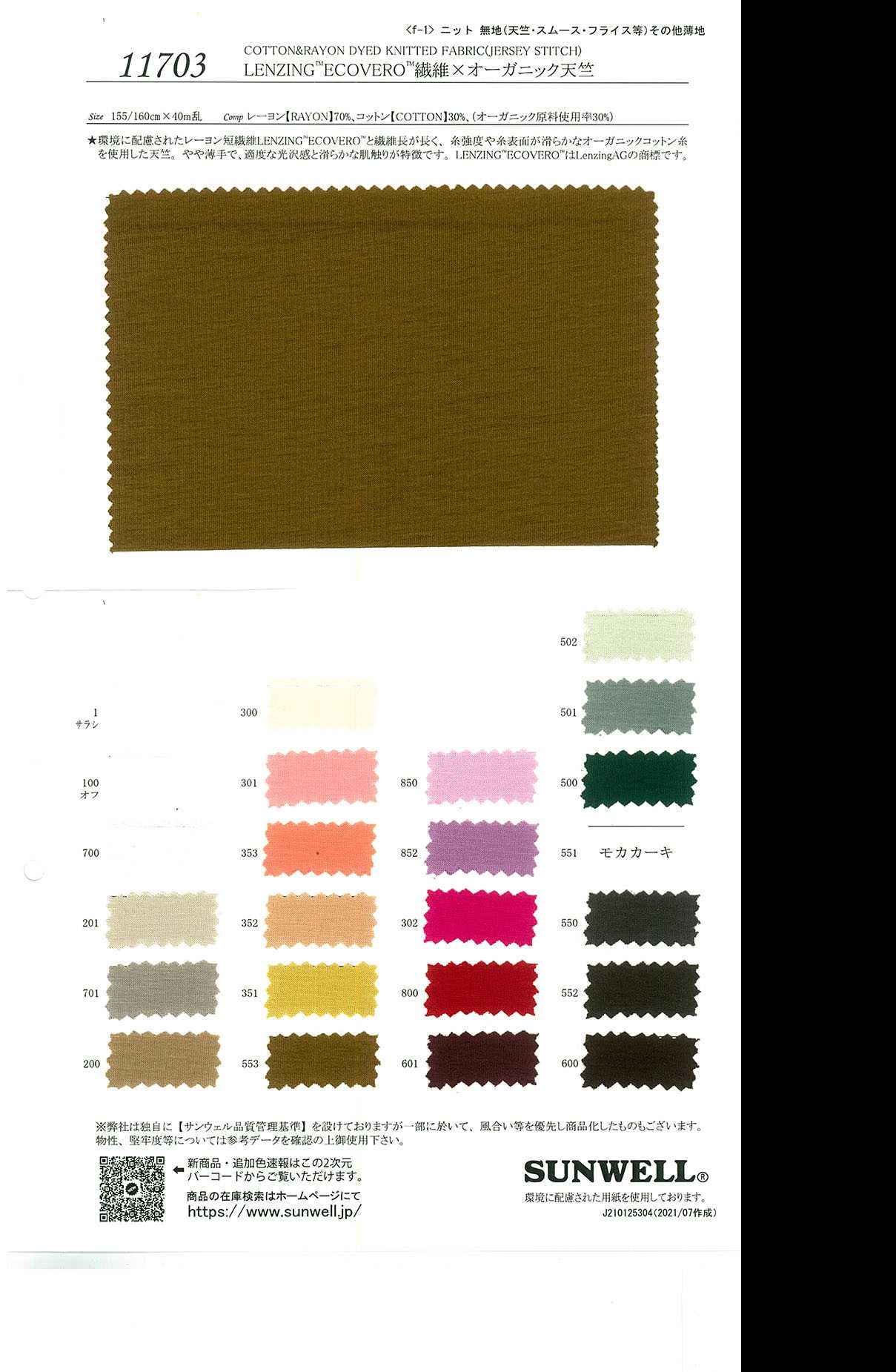 This jersey with environmentally friendly rayon staple fiber LENZING™ ECOVERO™ and organic thread thread , which has long fiber length, thread strength, and a smooth surface. It is slightly thin and features a moderate luster and a smooth feel. LENZING™ and ECOVERO™ are trademarks of Lenzing AG.
