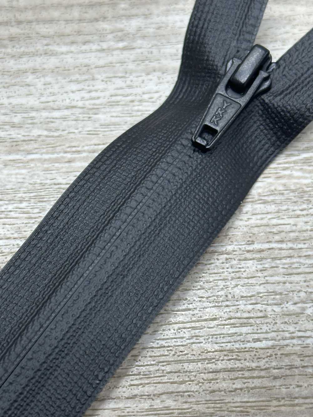 This is an extremely thin and flexible zipper developed by YKK , which incorporates resin elements woven into a knitted tape.