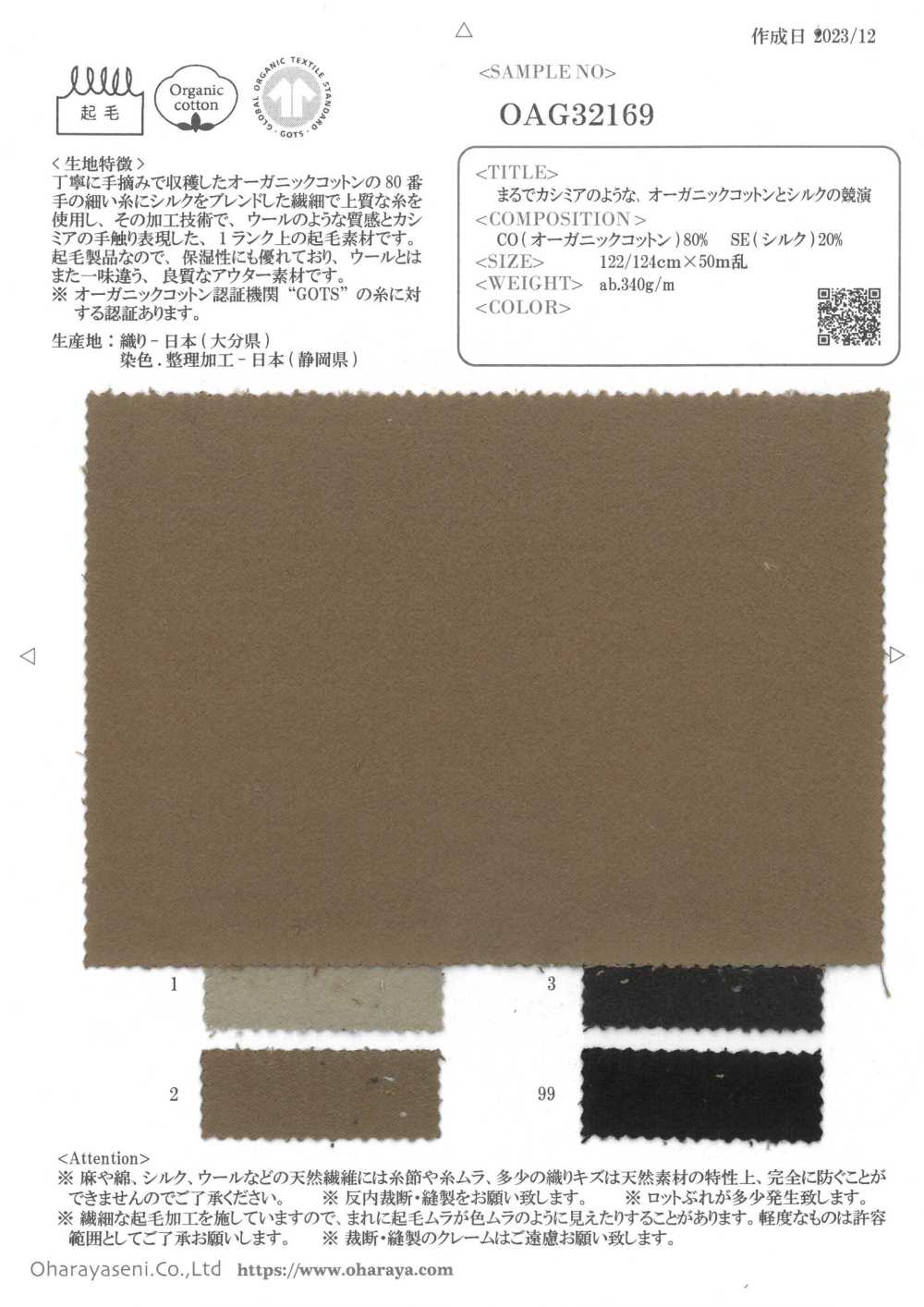 OAG32169 A collaboration of organic cotton and silk that feels just like cashmere [Fabric] Ohara Textile