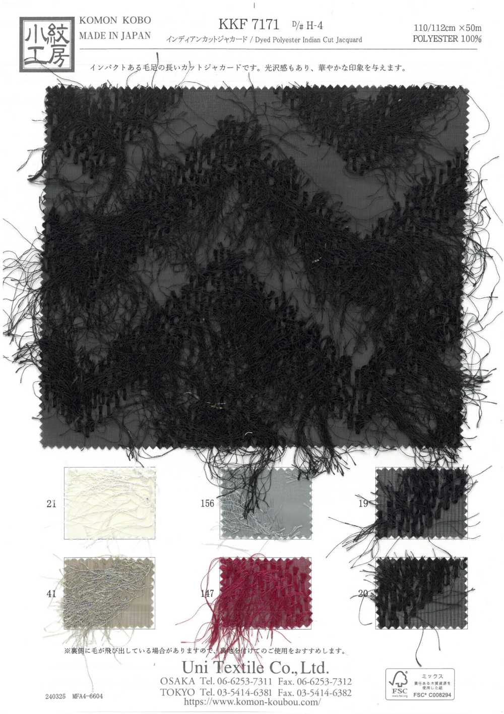 KKF7171-H-4 Indian Cut Jacquard, Zigzag Pattern [Fabric] Uni Textile (Komon Kobo)