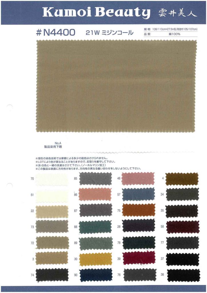 This is a fine-wale corduroy fabric with a refined look. Its excellent heat retention makes it suitable for autumn and winter clothing.