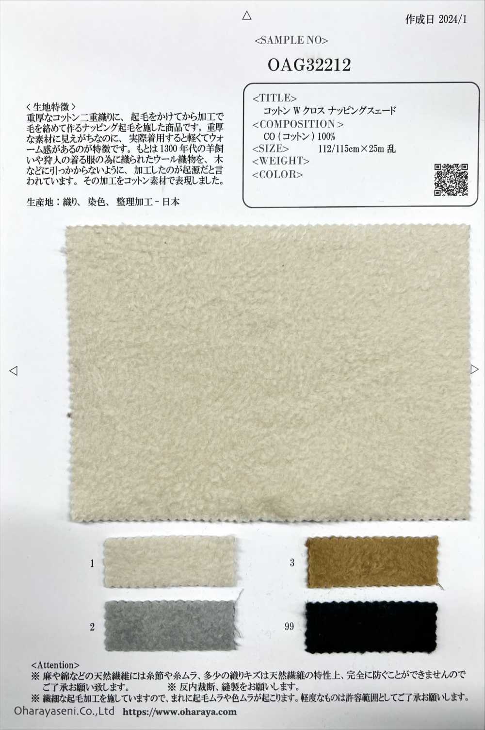 OAG32212 Cotton Double Cloth Napping Suede